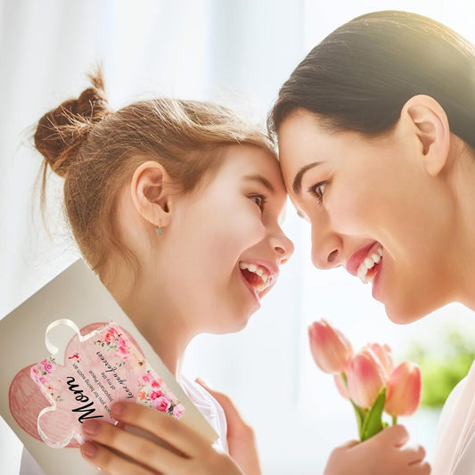 Gifts for Mom Christmas, Mom Birthday Gifts, Mom Gifts from Daughter Son, Decorative Acrylic Block Puzzle 3.9X3.3 Inch - Mom Birthday Gifts Mom Birthday Card for Mom, Cool Mom Ideas