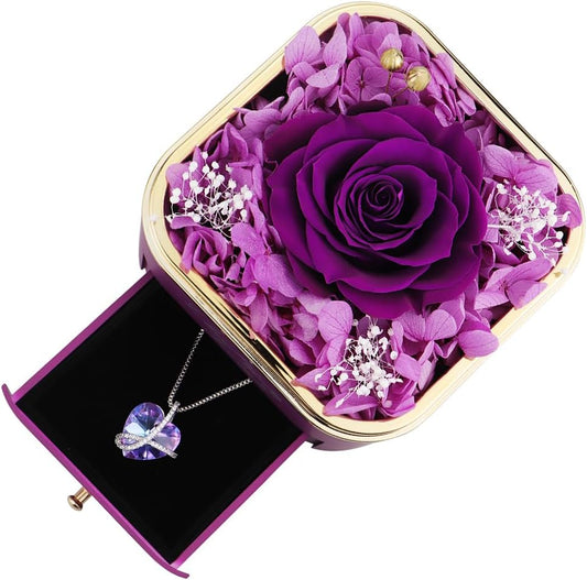 Purple Rose with Purple Necklace, Gifts for Mom Grandma Wife Mom Girlfriend, Birthday Gifts for Women Anniversary