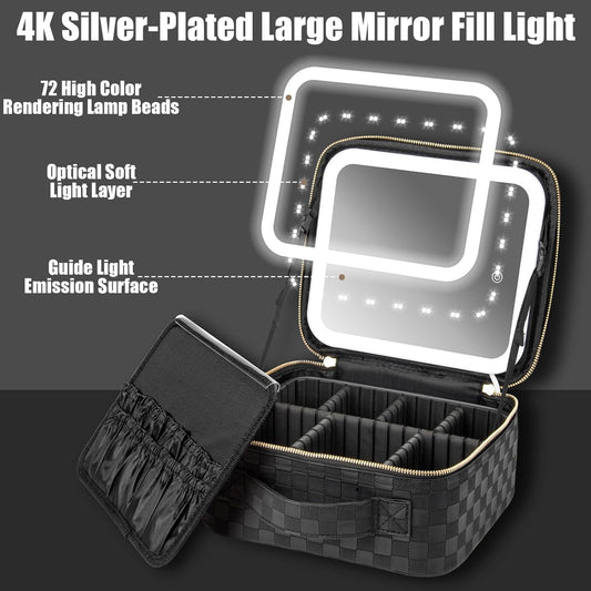 Makeup Travel Bag with LED Lighted Mirror Adjustable Brightness Portable Waterproof Makeup Case