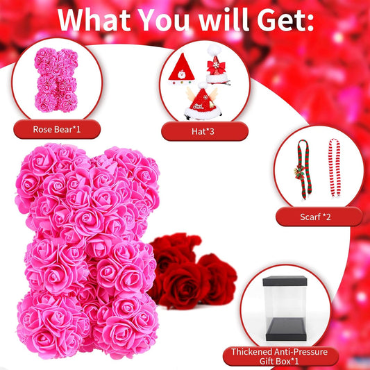 Rose Bear,Dress-Up Set with 3 Hats and 2 Scarf,Artificial Flower Teddy Bear Xmas Gift,Valentine'S Day Gift